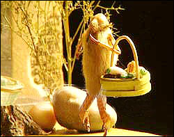 В конце XIX - начале XX в. в Пекине на улице Баньчжанлу располагалась аптека ?Наньцинжэньтан?. Однажды после работы двое приказчиков этой аптеки сделали фигурки обезьян из кусочков меха, панциря цикады и частей двух растений. Хозяин аптеки заинтересовался изделиями своих приказчиков и решил продавать компоненты для изготовления фигурок обезьян, которые стали пользоваться большой популярностью.