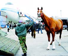 Во второй половине дня 17 марта 51 скаковая лошадь специальным грузовым рейсом прибыла в Пекин. Эти лошади примут участие в забегах во время Олимпийских игр.
