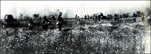8 августа 1945 года СССР объявил войну Японии. Наступление советских войск в районе Северо-Востока Китая началось 9 августа. На снимке: продвижение Советской Армии.