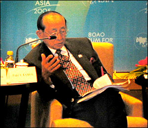 22 апреля генеральный секретарь Боаоского азиатского форума Лун Юнту, председатель правления Боаоского азиатского форуму, вице-президента Филиппин Ф. Рамоса и первый высококвалифицированный экономист Всемирного банка в Пекине Bert Hofman обсуждали соответствующие вопросы в рамках Боаоского азиатского форума 2005.