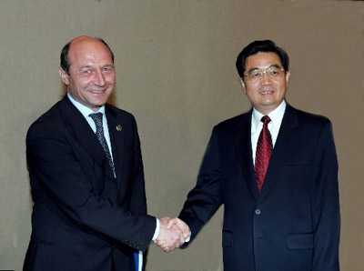 В свою очередь Т. Бэсеску назвал двустороннюю дружбу плодом, выращенным народами обеих стран. Несмотря на изменение политической ситуации в Румынии за последние годы, постоянное укрепление и расширение ее отношений с Китаем остается общей политикой правящей и оппозиционных партий страны. Правительство Румынии решительно отстаивает политику одного Китая. Между нами не существует никаких проблем, совместными усилиями обе страны будут укреплять традиционную дружбу и взаимодействие. Собеседники выразил удовлетворение развитием двусторонних торгово-экономических связей, достигли единства мнений по вопросу дальнейшего расширения взаимовыгодного сотрудничества. По словам китайского лидера, у двустороннего торгово-экономического взаимодействия имеются потенциал и перспективы развития. Необходимо оказывать активную поддержку увеличению инвестиций предприятий обеих сторон и активизировать взаимовыгодное сотрудничество. С румынской стороны было отмечено, что китайские товары пользуются большой популярностью на румынском рынке. Румыния активно развивает туризм, расширяет строительство коммуникационных объектов. У китайских предприятий существует хорошая конкурентоспособность в этих сферах, налицо широкие перспективы двустороннего взаимодействия.