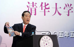 Сун Чуюй отметил стимулирующую роль Цинхуа в претворении в жизнь политики реформы и открытости. Из стен этого университета вышли около 300 высокопоставленных партийно-политических деятелей Китая, включая председателя КНР Ху Цзиньтао, а также большое число известных ученых. Сун Чуюй связал блестящие достижения Цинхуа с мудрым сочетанием западного научного практицизма и гуманистического духа китайской нации. "Опыт этого университета -- лучший опыт всего китайского народа", -- сказал Сун Чуюй.