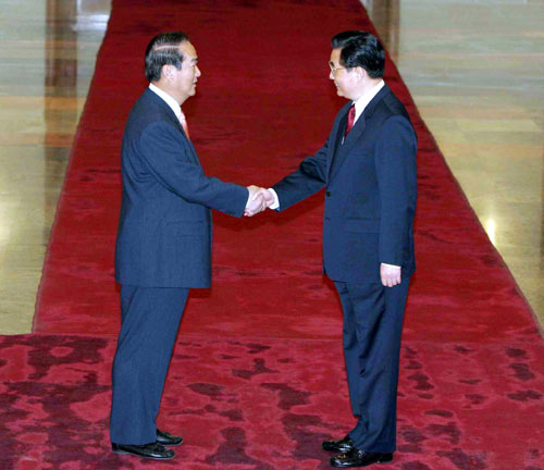 12 мая во второй половине дня в Доме народных собраний в Пекине началась встреча генерального секретаря ЦК КПК Ху Цзиньтао и председателя тайваньской партии Циньминьдан (Партия сближения с народом) Сун Чуюя. После встречи состоятся переговоры.