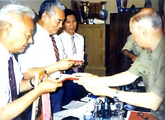 Н. Сидиев вручает членам делегации Пекинской авиационной ассоциации свидетельства и ордена