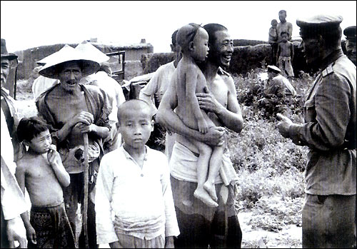Встреча воинов Красной Армии с населением на территории Большого Хингана. (Автор – Раскин С. Фото из фонда РИА ?Новости?)