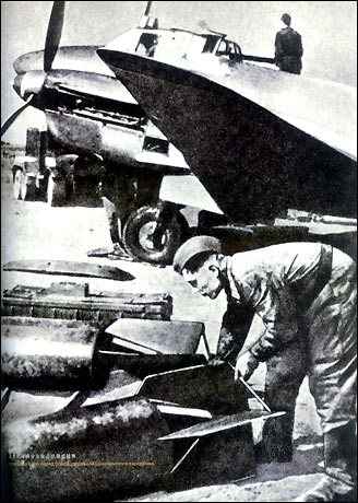 Установка бомб перед бомбардировкой Суншаньского аэродрома.