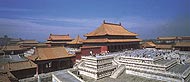 Огромный Запретный город состоит из двух главных частей: внешних павильонов и внутренних резиденций. За дворцовыми воротами один за другим расположены павильон Тайхэдянь (Высшей Гармонии), павильон Чжунхэдянь (Совершенной Гармонии) и павильон Баохэдянь (Сохранения Гармонии). Эти три павильона предназначались для проведения важнейших государственных и придворных церемониалов. В северной части императорского дворца находятся павильон Цяньцингун (Соприкосновение Неба и Земли) и павильоны Цзяотайдянь и Куньнингун, предназначенные для семейных торжеств, в период Минской династии здесь же была опочивальня императриц. Находящиеся по обеим сторонам дворца шесть павильонов служили местом проживания наложниц императоров.