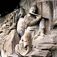 Среди изваяний в горе Баодиншань есть немало скульптурных сценок из жизни простолюдинов. Люди или спят, или играют на музыкальных инструментах… все фигурки очень живые.