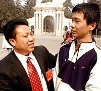 Цзинь Гаоли – депутат из провинции Фуцзянь, предприниматель из уезда Цзяньнин в горном районе Фуцзяни специально навестил Лю Фушэна, который сейчас учится в Университете Цинхуа на втором курсе факультета автоматизации. С 1994 года до настоящего времени Цзинь Гаоли материально поддерал почти 100 учащихся, в том числе более 60-ти студентов. Среди них – Лю Фушэн.
