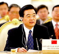 Ху Цзиньтао сказал: два года назад председатель КНР Цзян Цзэминь и присутствующие в этом зале основали Шанхайскую организацию сотрудничества (ШОС). Ее создание -- важное событие в развитии международных отношений в начале XXI века, а также важное и далеко идущее изменение в геополитической структуре евразийского континента после окончания холодной войны. ШОС выдвинула инициативу о новой концепции безопасности и межгосударственных отношений, стремясь к поискам и развитию новой модели регионального диалога и сотрудничества, содействию миру и развитию в регионе и во всем мире, она внесла важный вклад в содействие многополярности мира и создание справедливого и рационального нового международного политического и экономического порядка.