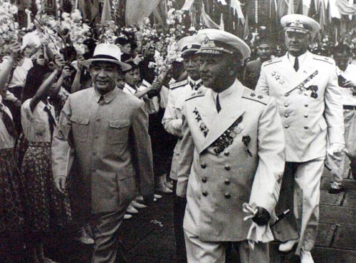 Жители Шанхая приветствуют советских военных моряков, прибывших с визитом дружбы. Шанхай, 1956 г.