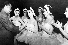 Премьер Госсовета КНР Чжоу Эньлай благодарит исполнителей балета《Лебединое озеро》в Большом театре СССР.