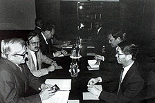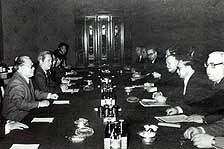 Участники шестого раунда советско-китайских политических консультаций: заместитель министра иностранных дел СССР Л. Ф. Ильичев, специальный представитель Китайского правительства, заместитель министра иностранных дел КНР Цянь Цичэнь и др.