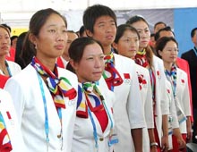 China ya tiene su bandera nacional izada en la Villa Olímpica de los Juegos de Atenas 2004 antes de recibir las bendiciones del ex presidente del Comité Olímpico Internacional (COI), Juan Antonio Samaranch, que deseó muchos éxitos al equipo chino.