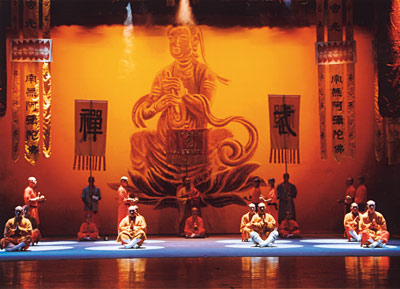 El grupo de monjes de arte marcial del Templo Shaolin se formó en 1987, y todos se han convertido al budismo y ofrecen oficios en el mismo templo. Ellos han estado de visita en más de 100 países y regiones de Europa, Oceanía, Asia, América del Norte y el Sudeste Asiático, y se han ganado el respeto y afecto de los pueblos locales de idiomas y razas diferentes por sus excelentes técnicas, misteriosas e insondables. “El viento del este envía lejos el redoble de los tambores, y los caballos relinchan anunciado la llegada de los guerreros”. Mientras las banderas del Kung Fu de Shaolin se baten en el aire con gallardía, unámonos para empujar juntos la rueda de la historia siempre adelante.