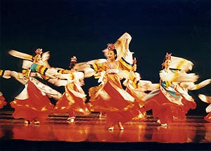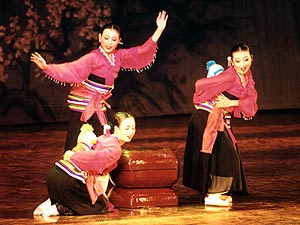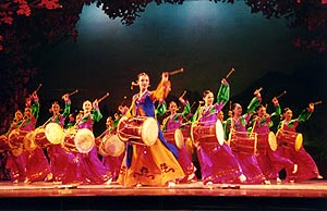 El público se ha familiarizado con la danza coreana con tamboril, pero no pocos se equivocan creyendo que es una danza femenina. En realidad, tanto el hombre como la mujer puede ser su intérprete.
