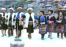 A parte de sus vestidos y adornos peculiares, la gente del cantón de Heihu tiene una forma extraordinaria para expresar sus sentimientos de amor, la que se manifiesta en la danza “Duiyijin” (agitar las partes delanteras de la camisa)”.