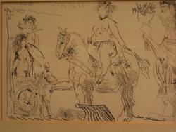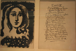 La exposición se divide en 8 secciones que van desde las pinturas de vestidos teatrales del “tricornio” a las ilustraciones realizadas por el pintor a partir de los poemas del escritor del Siglo de Oro espa?ol Luís de Góngora, pasando por las aguatintas realizadas en 1957 para ilustrar el libro “l(fā)a Tauromaquia. El Arte de Torear” de José Delgado (tratado sobre el toreo y el mundo de los toros), las ilustraciones realizadas en 1949 para ilustrar una edición de “Carmen”, las ilustraciones para una edición del clásico de 1499 atribuido a Fernando de Rojas “La Celestina”, los grabados realizados en 1968 para ilustrar la comedia en tres actos “El Cocu Magnífico” del escritor Fernand Crommelynck, o las aguafuertes realizadas en 1942 para ilustrar la obra “Historia Natural” de Geoges Louis Lequerc o las ilustraciones realizadas para Pierre de Reverdy.