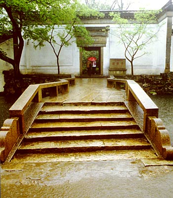 Paseando en el Quiosco Langcangting (Olas encrespadas) bajo la lluvia