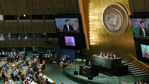 Chinese President Xi Jinping speaks at the United Nations Sustainable Development Summit during the United Nations General Assembly in New York on September 26, 2015. [Photo / Xinhua]